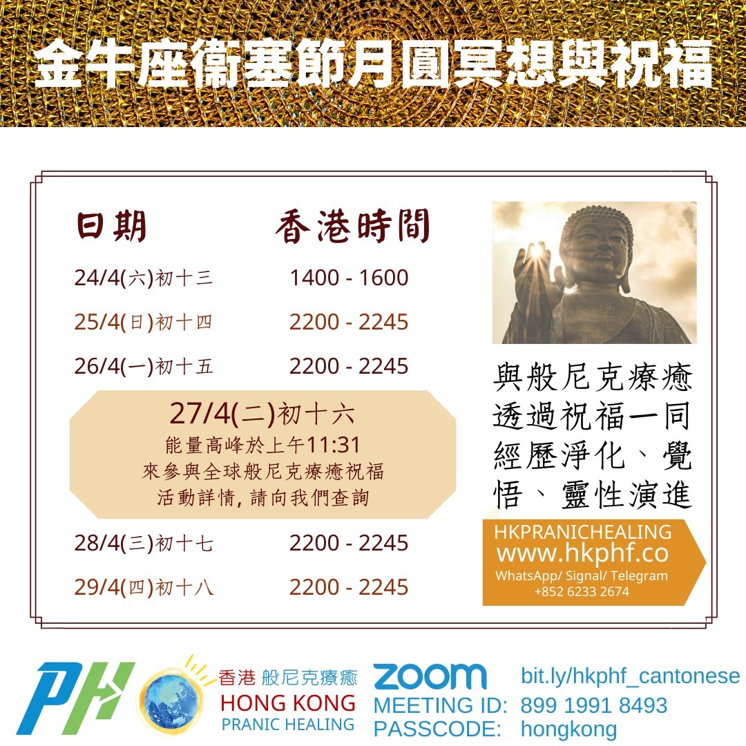 香港般尼克療癒線上活動 - 金牛座衛塞節月圓冥想與祝福